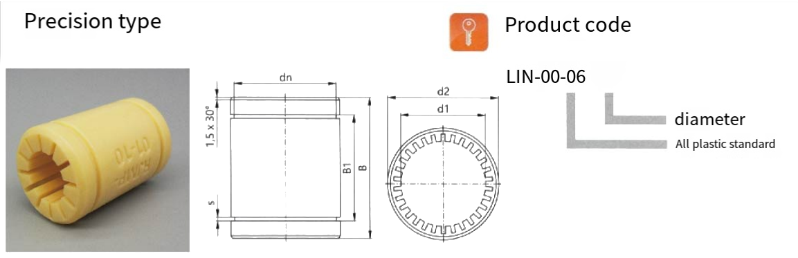 Engineered for high-precision assemblies, the HZ-LIN Precision Bearing features ultra-low dimensional tolerances (±0.02mm) and a smooth bore finish. Its low moisture absorption (<0.5%) ensures stability in humidity-controlled environments like medical devices, optical equipment, or robotics.