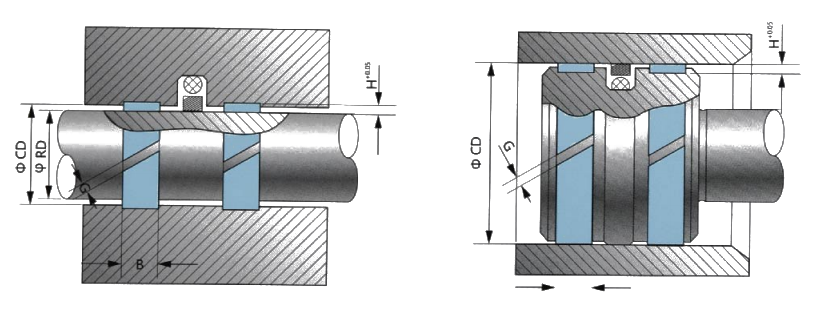 The hydraulic cylinder piston and piston rod support rings refer to the specification
